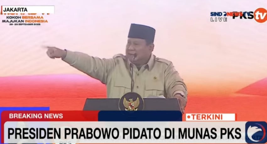 Pemimpin Negara Prabowo Subianto berpidato Untuk Munas VI PKS Hingga Hotel Sultan, Jakarta Pusat, Senin (29/9/2025). Foto/Tangkapan layar
